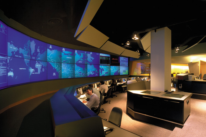 Part of the head office complex for Canada Post in Ottawa, the Control Center accounted for almost $20,000,000 of the project’s overall construction cost, a figure indicative of the complexity of the work involved. It houses the world’s most sophisticated mail monitoring system, together with advanced-technology communications and computing facilities that tie the system to regional centers across the country and provide its national intelligence. Built to clean room standards, the center features multi-level computer flooring, several thousand meters of communication and power cabling, and provision for special systems to control air exchanges within the environment. |